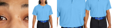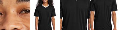 * 100% polyester wicking knit with color secure(r) technology that helps prevent dye migration * 90% polyester/10% spandex wicking mesh inserts with color secure(r) technology that helps prevent dye migration * Wicks moisture * Tag-free label * Low profile tapered collar * Raglan sleeves * Modified dropped back hem