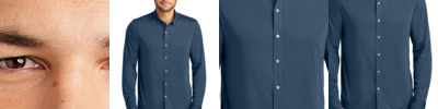 All the traditional components of a classic dress shirt combined with the comfortable drape of soft jersey fabric in a modern, moisture-wicking hybrid silhouette. A versatile choice for the office featuring all the comfort of a favorite tee.