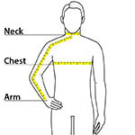 | Chest | 34-36 | 38-40 | 42-44 | 46-48 | 50-52 | 54-56 | 58-60 |