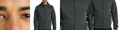 This premium, top-selling Nike style is a true icon. Warm, soft and smooth on both sides, Nike Tech Fleece is great on its own, layered over a tee or worn under a jacket when conditions call for it. Design details include a three-panel hood, dropped shoulder seams for easy movement and zippered front pockets. Zippered front pockets with extended pulls, elastic cuffs and hem. The contrast heat transfer Swoosh logo is on the left sleeve. Made of 9.1-ounce, 47/53 polyester/cotton fabric with at least 50% recycled and/or organic content.