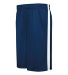 Color side is 100% polyester propelit micromesh wicking knit * White side is 100% polyester wicking knit * Wicks Moisture * Covered elastic waistband with inside drawcord * Contrast color inserts * Fully reversible * Each layer hemmed separately for embellishment * 10-inch inseam * Youth inseam graded * Designed to be NFHS compliant
