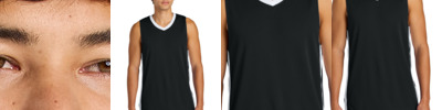 Color side is 100% polyester propelit micromesh wicking knit * White side is 100% polyester wicking knit * Wicks Moisture * Outside locker label * V-neck collar * Contrast color inserts and piping * Fully reversible * Each layer hemmed separately for easy embellishment * Designed to be NFHS compliant